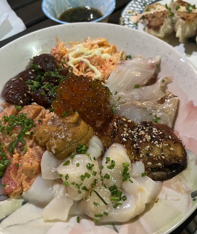 O chirashi do chef: ouriço, vieira, king crab e outrs delícias