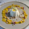 Depois, um ceviche de caráter autoral, também de linguado, com leche de tigre, pipoca de quinoa e picles de abóbora em lâminas.