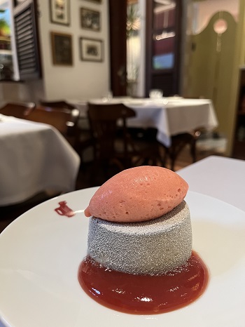 Além dos embutidos, outra especialidade do chef Gonzalo Vidal são as sobremesas, que além de saborosas, são bonitas e irreverentes, com apresentação caprichada. O Gringo e a Gata é uma releitura do Romeu e Julieta, uma torta de Catupiry que faz lembrar um pedaço de brie, com recheio muito cremoso, com calda de goiabada cascão e sorvete de goiaba; enquanto a bananita reproduz a fruta, uma mousse de banana com caramelo salgado, chocolate branco e gelato de banana. Sobre o balcão, outra estrela entre as sobremesas: a Rogel, uma espécie de torta, com camadas de massa fina e crocante recheadas de doce de leite, com merengue e toque de limão siciliano.