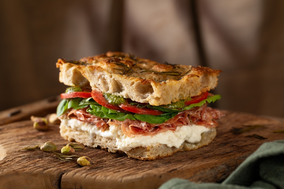 O rosbife Verona Rosbife Verona tem finas fatias de rosbife, brie, dijonnaise (maionese de mostarda), tomates frescos e rúcula; enquanto o Presunto Roma reúne Royale artesanal, stracciatella, creme de pistache e rúcula, além de um toque crocante de pistache.