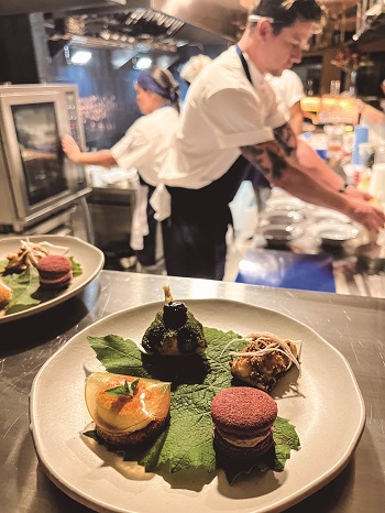 São apenas 30 lugares, entre mesas e o balcão, com vista para o preparo dos pratos, que primam pela beleza e originalidade, com apresentação impecável. O primeiro cardápio é um cartão de visitas e tanto, e já começa com um serviço de pão de fermentação natural e manteiga da casa, com toque de cebola tostada, e uma ostra, com frescor valorizado pelo azeite de ervas.