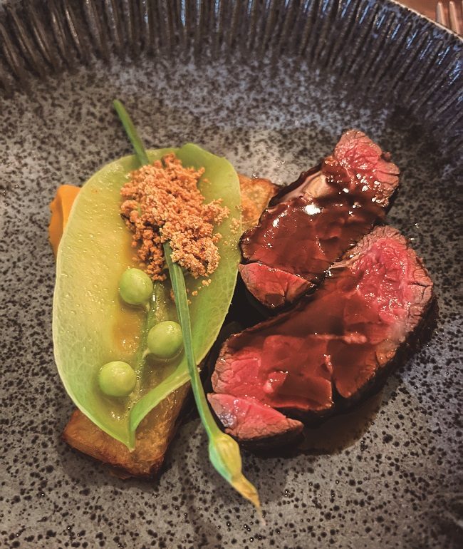 São apenas 30 lugares, entre mesas e o balcão, com vista para o preparo dos pratos, que primam pela beleza e originalidade, com apresentação impecável. O primeiro cardápio é um cartão de visitas e tanto, e já começa com um serviço de pão de fermentação natural e manteiga da casa, com toque de cebola tostada, e uma ostra, com frescor valorizado pelo azeite de ervas.