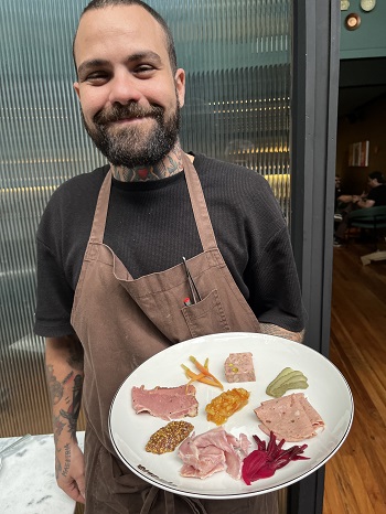 O chef Pedro Attayde ganhou fama produzindo uma olhada de charcutaria de alto nível, seguindo a escola francesa, com embutidos, terrines, patês e carnes curadas, além de complementos, como picles, em sua pequena fábrica artesanal Cochon Rouge.