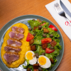 Para provar um pouco de tudo, o grelhado misto traz linguiça, alcatra, maminha, fraldinha e miolo de paleta. Servido com palmito natural assado na casca e legumes grelhados.