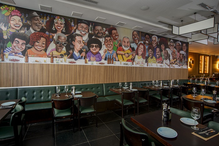 Recentemente, a Churrascaria Palace foi declarada Patrimônio Histórico, Cultural, Turístico, Gastronômico e Imaterial do Estado do Rio de Janeiro pela ALERJ. Prestes a completar 75 anos, em 2026, a mais tradicional churrascaria da cidade, em Copacabana, vai ganhar um livro, escrito por esse colunista, orgulhosamente. A casa acaba de inaugurar seu novo salão, dobrando a sua capacidade, com belo projeto do arquiteto Chicô Gouvêa, que tem iluminação de Maneco Quinderé, e um belo ensaio com fotos em preto e branco do bairro, feito pela artista Kitty Paranaguá. Chama a atenção na decoração o painel “Samba Ceia”, com a curadoria de Moacyr Luz, criado pelo cartunista Carlinhos Muller, que assina uma obra emblemática do restaurante, “A última ceia da Bossa Nova”. No novo desenho são 26 nomes importantes do samba carioca, na maior roda de samba de todos os tempos: você consegue reconhecer todos os personagens da foto acima?