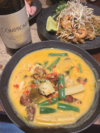 É possível, por exemplo, viajar pelos sabores da Tailândia, no Cam’On Thai Food, com unidades na Barra e em Botafogo. Podemos, no menu executivo, escolher entre o curry amarelo, o Khao Pad (arroz salteado com ovo), o Pad King (vegetais salteados na wok) e o Pad Thai (macarrão de arroz com molho picante de tamarindo. Todos, podem ser finalizados com frango ou porco, ou em versão vegana.